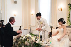 「結婚式当日は緊張をしていたせいもあり、周りを見れる余裕はほとんどなかったです。でも結婚式当日の記録撮影のビデオを見返すと、自分達の入場前から、どこのテーブルも寛いでくれていて、親族同士もより仲良くなっていました。