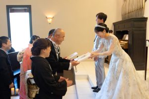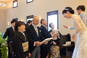 「実際に来るまでは想像もできなかったけど、こんなにたくさんの友人や職場の人が周りにいてくださるんだと気づかされました。こういう結婚式という場でしか感じる、分かることができないので、とても親として貴重な経験をさせてもらいました」