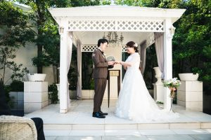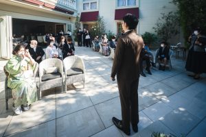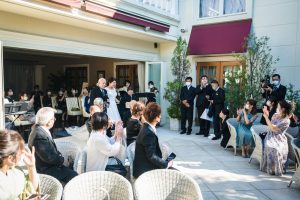 皆様は挙式のスタイルにどんなイメージをお持ちでしょうか。牧師や聖歌隊がいる「キリスト挙式」、もしくは新郎新婦がゲストの方を向いて司会者が進行を行う「人前式」など、今まで参列経験のある方は既に挙式のスタイルにイメージをお持ちかもしれません。今回は2021年10月に挙式をガーデンで行った結婚式のご紹介をさせて頂きます。