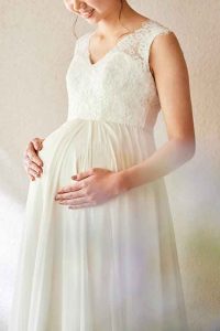ドレスの場合には、お腹のお子様の成長に合わせてサイズ調整が出来るデザインのものがおすすめです。ドレスの形も、あまりお腹が目立たないようなデザインをお選びいただくと良いと思います。高すぎるヒールを履かないなども注意点として持っておくと良いです。このような知識をきちんと持ちながらご準備を進めることで、お腹に赤ちゃんがいらっしゃっても安心して当日を迎えることが出来ます。