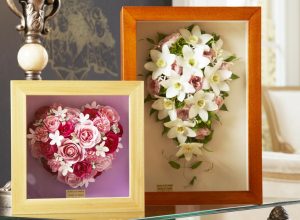 二人の想いが込められた大切なブーケを”思い出と共に最高の状態で美しく残したい”お預かりしてから、下処理・デザイン・仕上げの全工程を”手作業”で仕上げていきます。さらに、平面的に感じられる花びらを、より立体的に表現するために、他にはない工夫をしています。一枚・一枚の花びらを心を込めて、世界で一つの最高の押し花をご提供いたします。