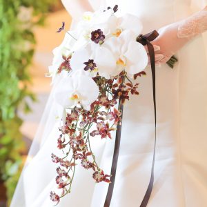 シックなデザインで胡蝶蘭が美しく飾られたブーケです^^