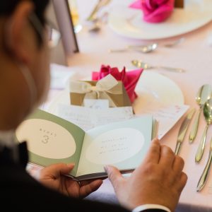 司会の方が新婦のいない間に、新郎や参列者に、新婦へのメッセージを聞き、