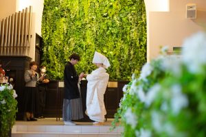 純白に染まったウエディングドレスも素敵ですが、エヴァウイン小山プレミアムスィーツなら和装の結婚式も叶います!挙式会場が真っ白な背景じゃないからこそ、そして十字架もなく宗教観がないからこそ、チャペル内和装挙式が可能です。