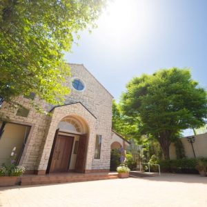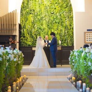 白亜のチャペルは、まるでヨーロッパの街角に佇むような雰囲気。自然光が降り注ぐ明るい空間で、お二人の神聖な誓いを祝福します。