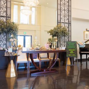 ゲストハウス内には、ゲストルームやブライズルーム、控室など、充実した設備が備わっています。また、駐車場も完備しており、遠方からのお越しの方にも安心です。受付周りもエントランスに一体型なので、貸し切り式場だからこそ来賓のゲスト様もゆっくりと待ち時間をお寛ぎいただけます。