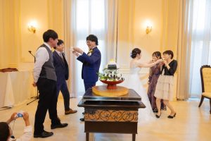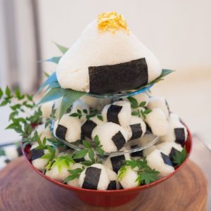 ウエディングケーキではなく『おにぎりタワー』をご用意されたおふたり。おにぎりタワー登場の瞬間はゲスト様も気になるようで、たくさんお写真を撮っておられました笑
