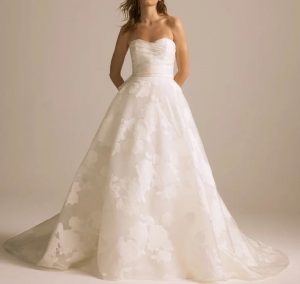 優美なローズの柄がドレス全体に浮かぶジャガード織りのボリュームドレス。