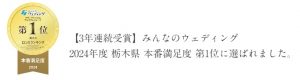 3年連続 第1位受賞!《栃木県全域 本番 満足度評価 第1位》