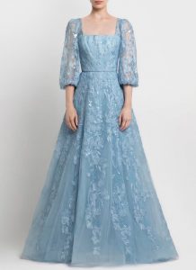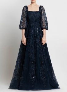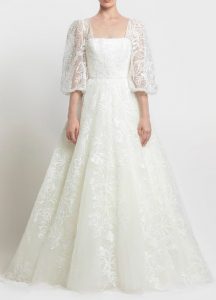 付属のロングパフショルダーはシアー感を出すことでレース模様が華やかに浮かび上がります。