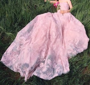 柔らかいブラッシュピンクは自然溢れるグリーンとも相性が良いのでガーデンウエディングでの着用もお勧めです。