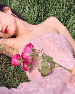 トレンドのパステルカラーを取り入れお肌馴染みの良いブラッシュピンクに染めた総レースがロマンティックな1 着。