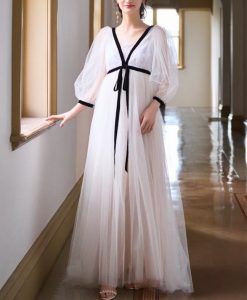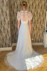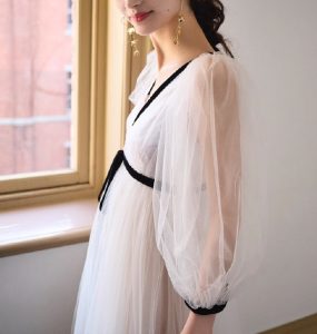 柔らかなソフトチュールをふんわりと重ねたシアー感の美しいエンパイアドレス。