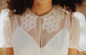 シルクオーガンジーの下にはヌードカラーのドットチュールを仕込むことで透き通るようなシルクオーガンジーからほんの少しドット柄がのぞきます。