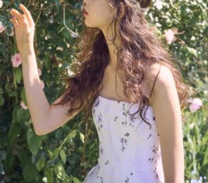 優しい色味で描かれたオリジナルの小花柄で世界中のバイヤーを虜にした1 着。