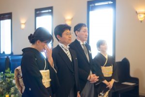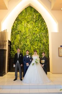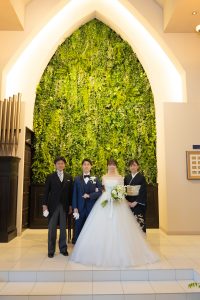 結婚式の当日、感動や緊張、嬉しさが入り混じった特別な気持ちでいっぱいの新郎新婦様と親御様。
