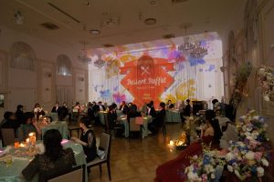 最大150名様まで収容可能なバンケットルームは、開放感あふれる空間で、ゲストとの距離も近くなります。新郎様新婦様とゲストが一体となって、笑顔溢れる時間を過ごすことができます。