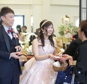 結婚式のプチギフトは、一般的に披露宴のお見送りの際、