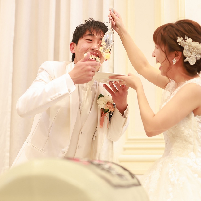 ビール型のケーキや友人に自分たちの入場曲を歌ってもらい、友人が熱唱の中、私たちが入場をするなど披露宴の進行にサプライズをたくさん行うことで、よりすべての方に楽しんでいただけた結婚式になりました。