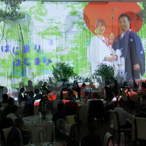 私たちが共通して好きなアニメ作品をテーマに、装花やオリジナルマッピング、飾りつけなど世界観を作り上げられたことは、各専門分野スタッフさんやお花屋さんのおかげです。