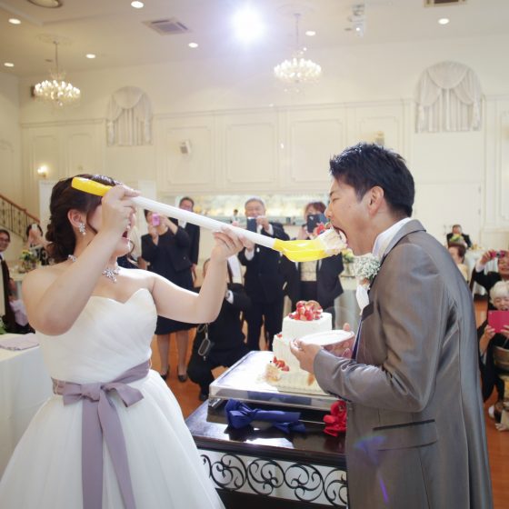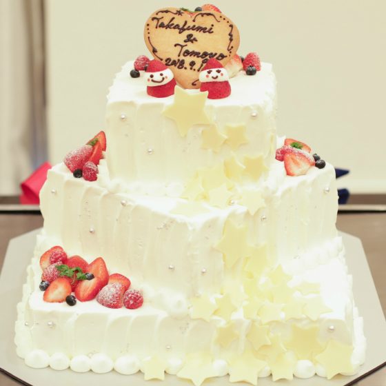 私達はゲスト一人ひとりとの交流を大切にしたかったので、フォトラウンドとデザートサーブを行ないました。デザートサーブはケーキを一人ひとりに手渡ししたのでゲストとたくさんお話しする事も出来ました。