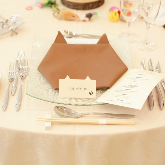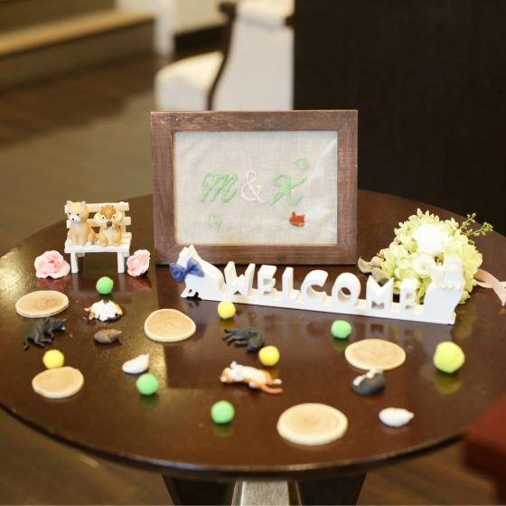 またウディングケーキのプレートには肉球のイラストを入れてもらったり、