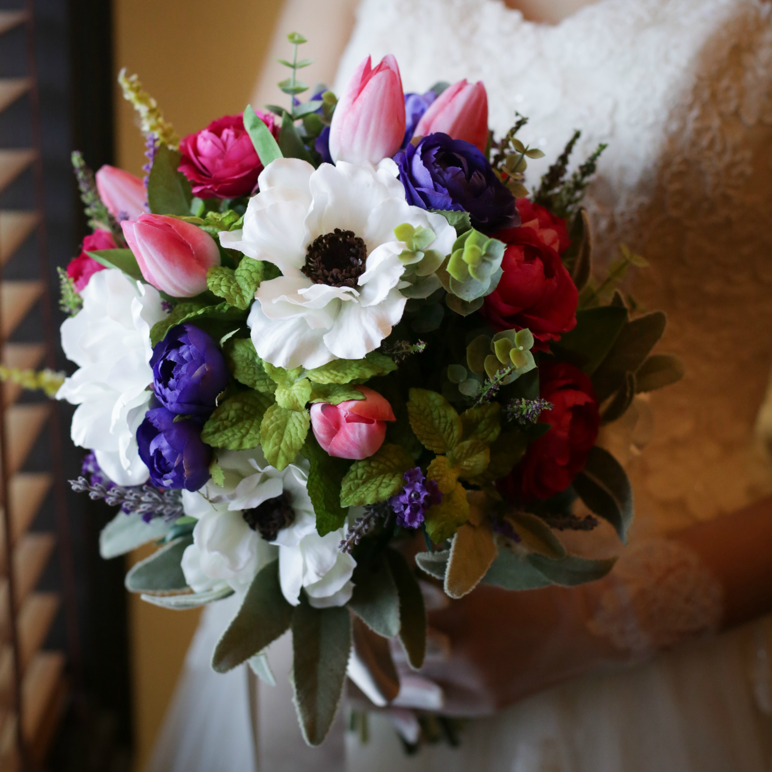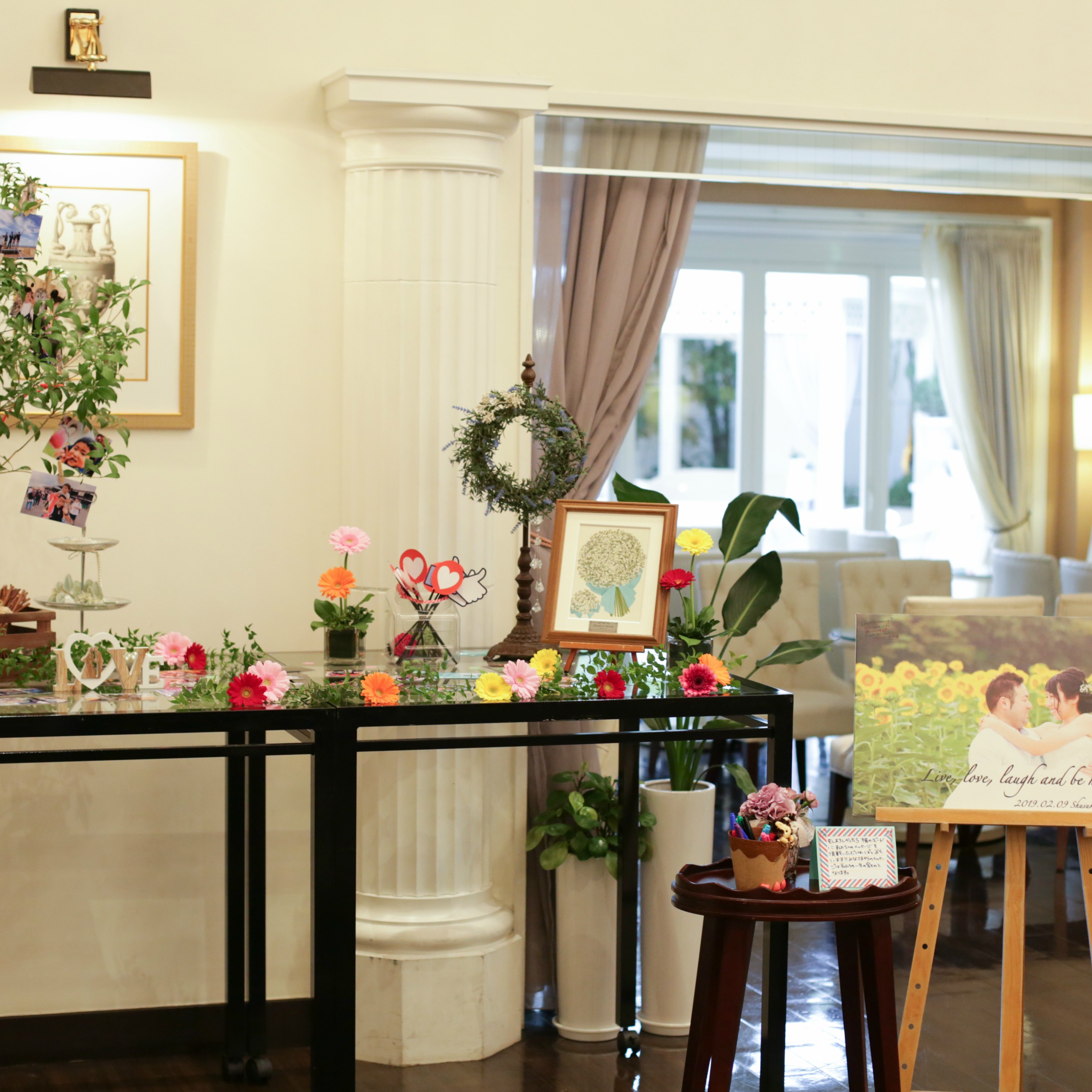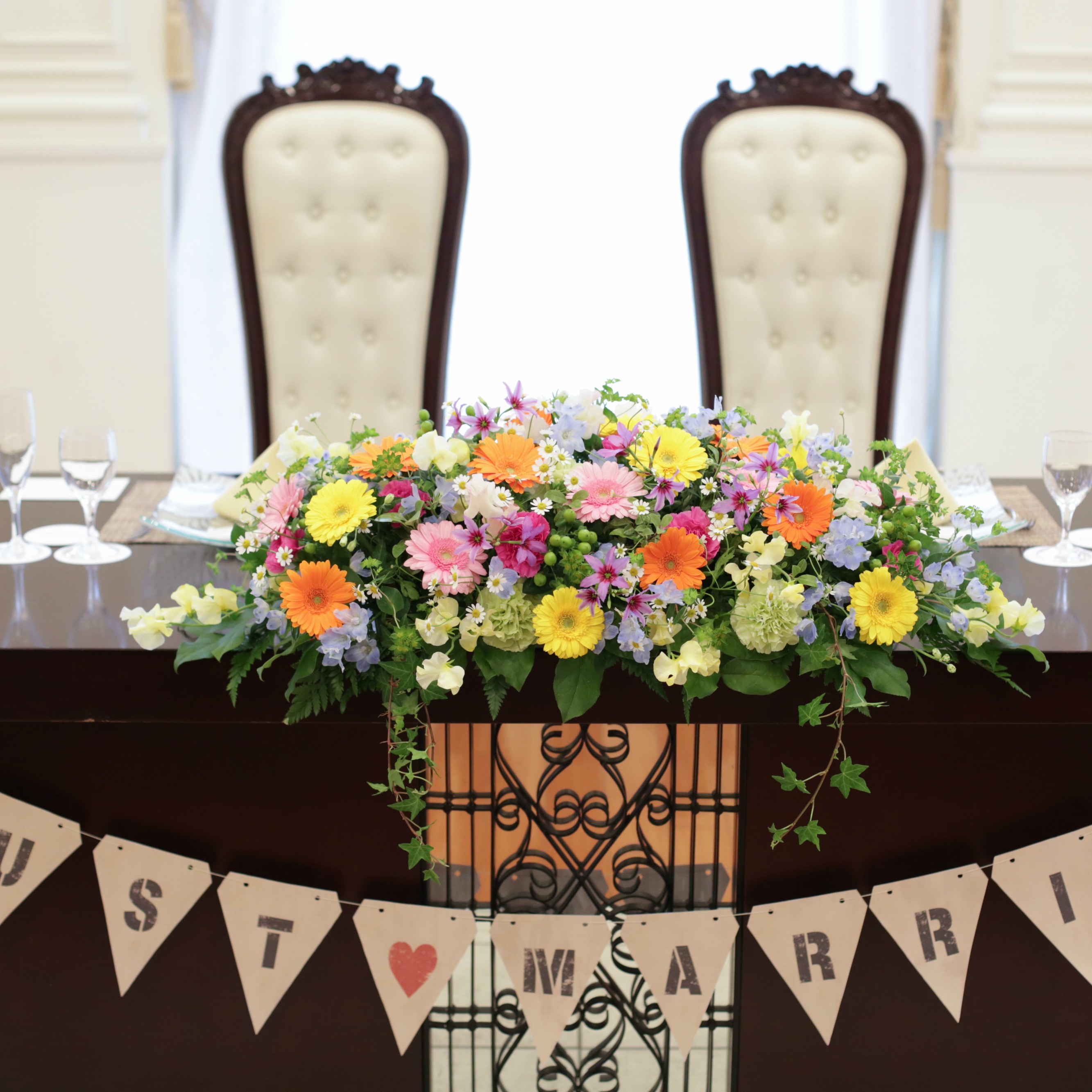 お花が好きなのでヘアアクセや会場装花等細かい部分でも