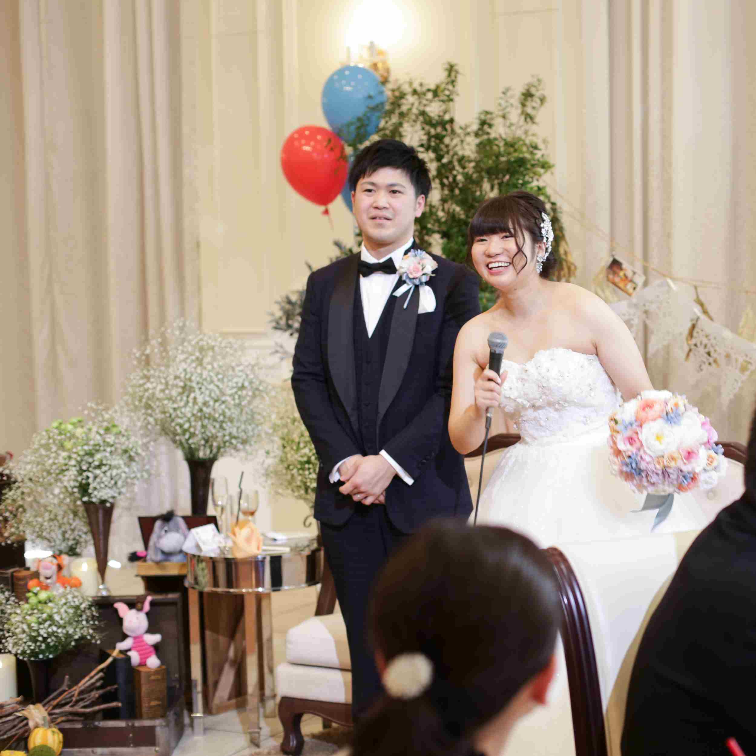 朝から二人とも落ち着かずソワソワ・・・していました。実際に式が始まると、あっという間でした。そしてとっても楽しい時間でした。こだわった部分をみんなに「かわいい」と言ってもらい嬉しかったです。お父さん・お母さんも大喜びでした。佐藤さんをはじめとしてスタッフの皆様に夢を叶えてもらいました。本当にありがとうございました。