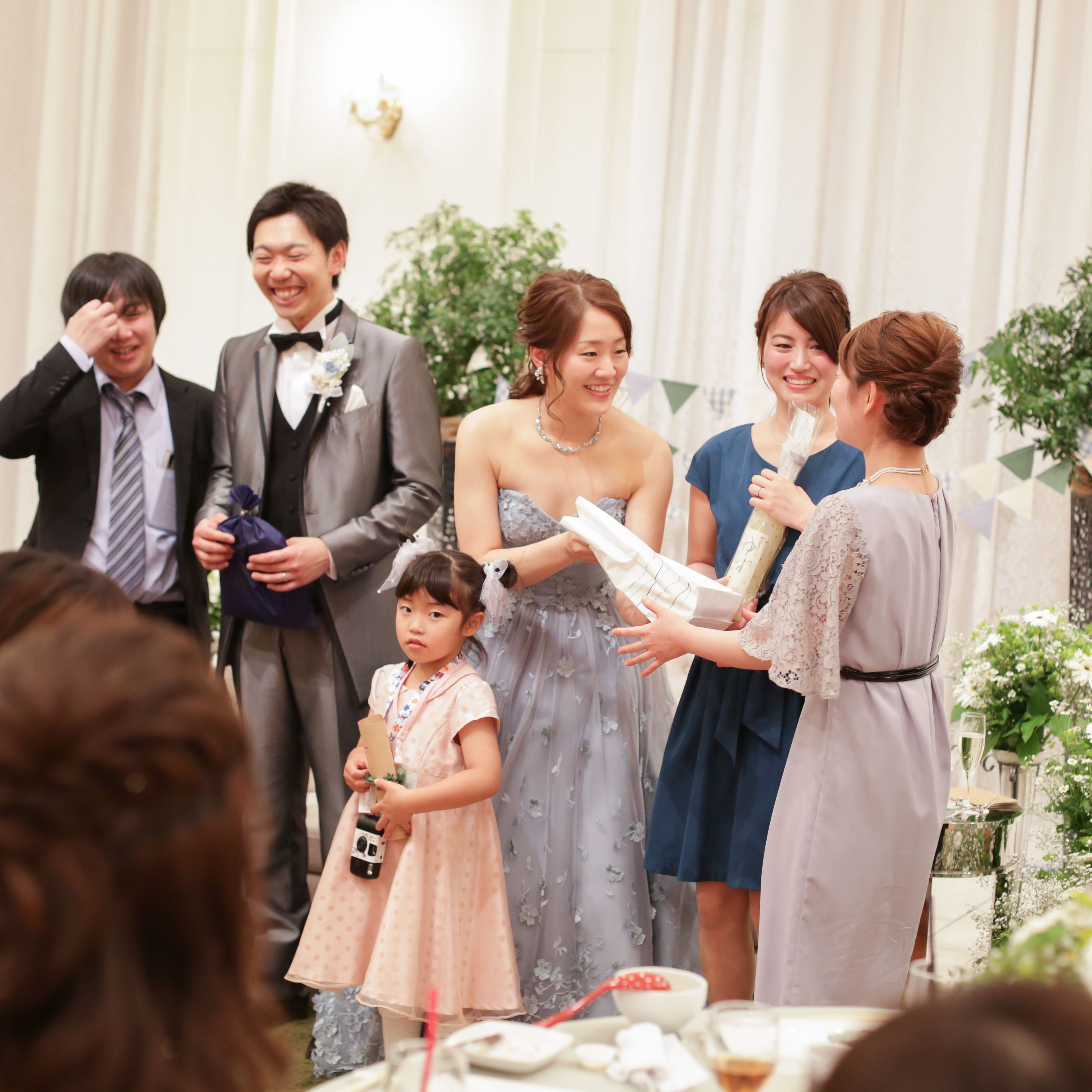 また、ゲストへの感謝を伝えたい、ゲスト同士の交流もして欲しいと思い、プレゼントリレーを企画しました。友人も親族もお互いに顔を見合わせながら楽しんでもらえたので、プランナーさんや司会者さんに相談して本当に良かったです!