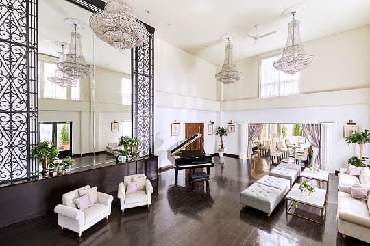 ラウンジやガーデンを使ったカジュアルな空間で、少人数ウエディングにふさわしい時間をお過ごしください。ホームパーティーのような感覚で緊張が和らぎ、自然体でゲストとの会話を楽しめます。 お料理は、 地元の旬の食材を生かした”フレンチジャポネ”を、お食事の進み具合に合わせ、最も美味しい状態でお料理をご提供します。 完全バリアフリーにも対応しておりますので、お子さま連れやご年配のゲストにも安心してお過ごしいただけます。