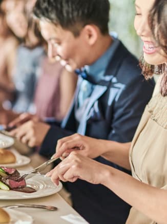 エヴァウイン小山プレミアムスィーツでは、大切なゲストをおふたりこだわりのパーティーへお招きする少人数ウエディングが叶います。「おもてなし」と「特別感」を大切にしたいおふたりにぴったりな、心の距離が近いからこそ伝わる温かなひとときをお過ごしいただけます。