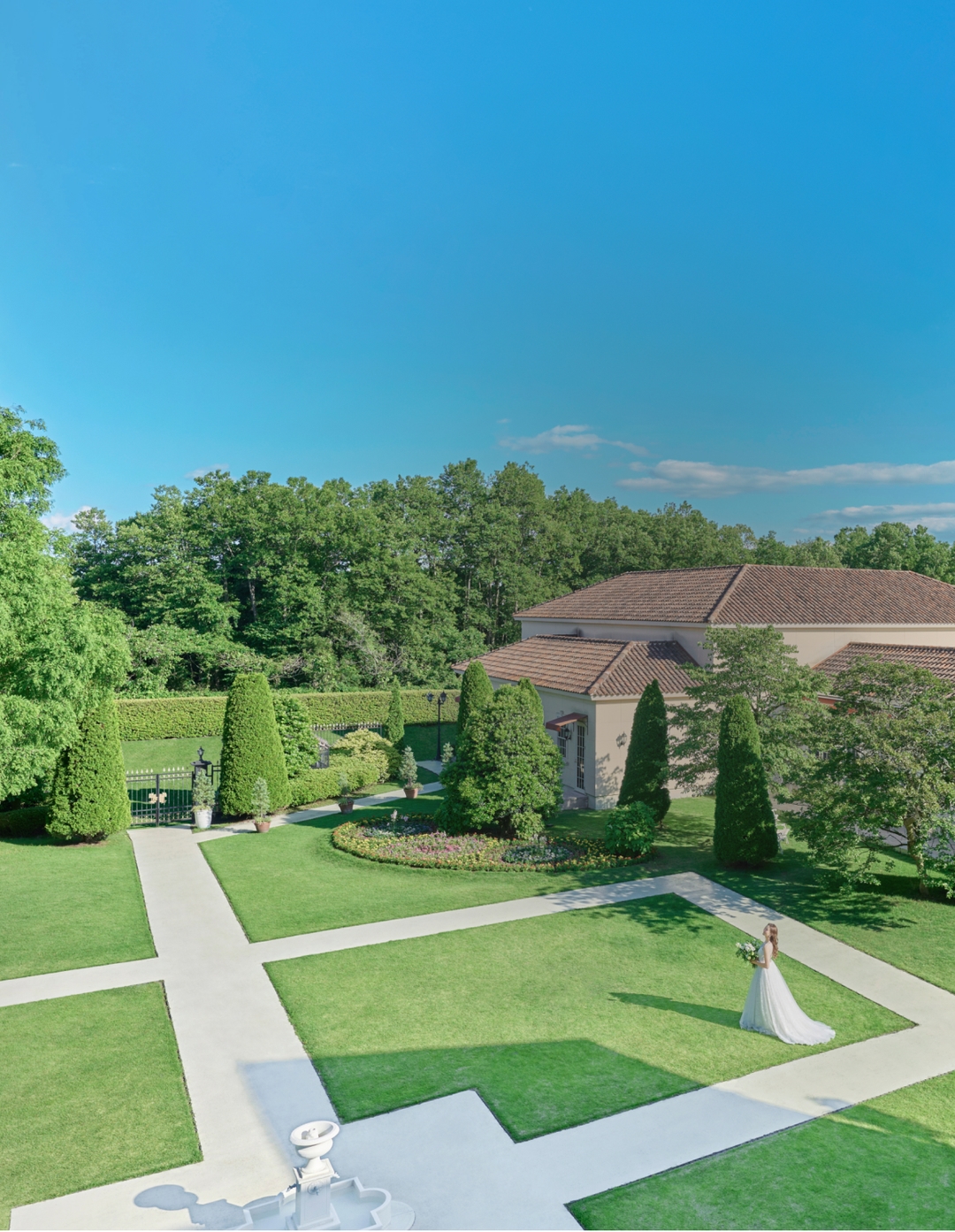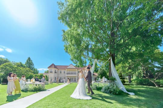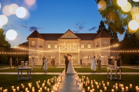 ゲストの方々をお迎えするのは、3000坪もの敷地に佇む優雅な大邸宅。美しいガーデンに溶け込む英国調の邸宅やチャペルをすべて貸切りにして行えるウエディングは、まるで外国映画のワンシーンのようにゲストを別世界へと誘います。贅沢なプライベート空間で、特別ながらもリラックスムードに満ちたパーティーをお愉しみください。