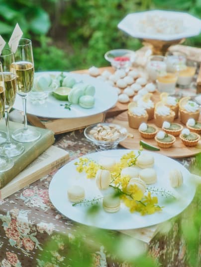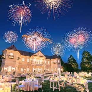 緑豊かなガーデンでは、まるで海外のウエディングのようにのびのびと自然を満喫する、自由でオシャレなガーデンパーティーが実現できます。例えば、シェフによる料理演出を取り入れた美食会、ドッグランを利用したペットと一緒のパーティーなど、おふたり次第でアイデアは無限大。また水戸市内で唯一となる、打ち上げ花火の演出も可能です。