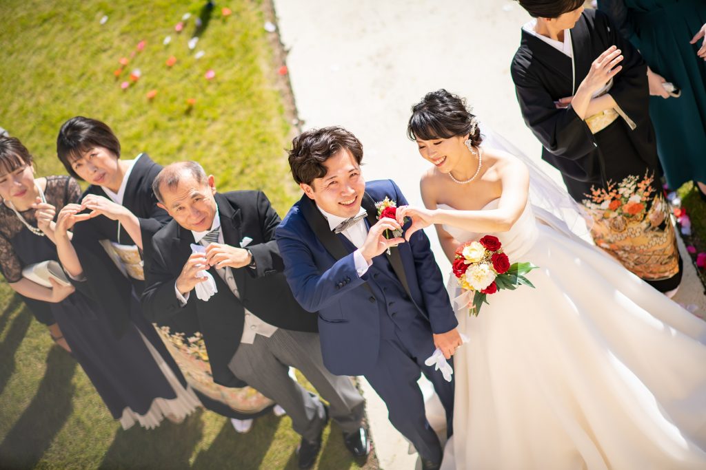 大切なゲストに囲まれながら幸せそうに少し照れながらも笑顔になる瞬間