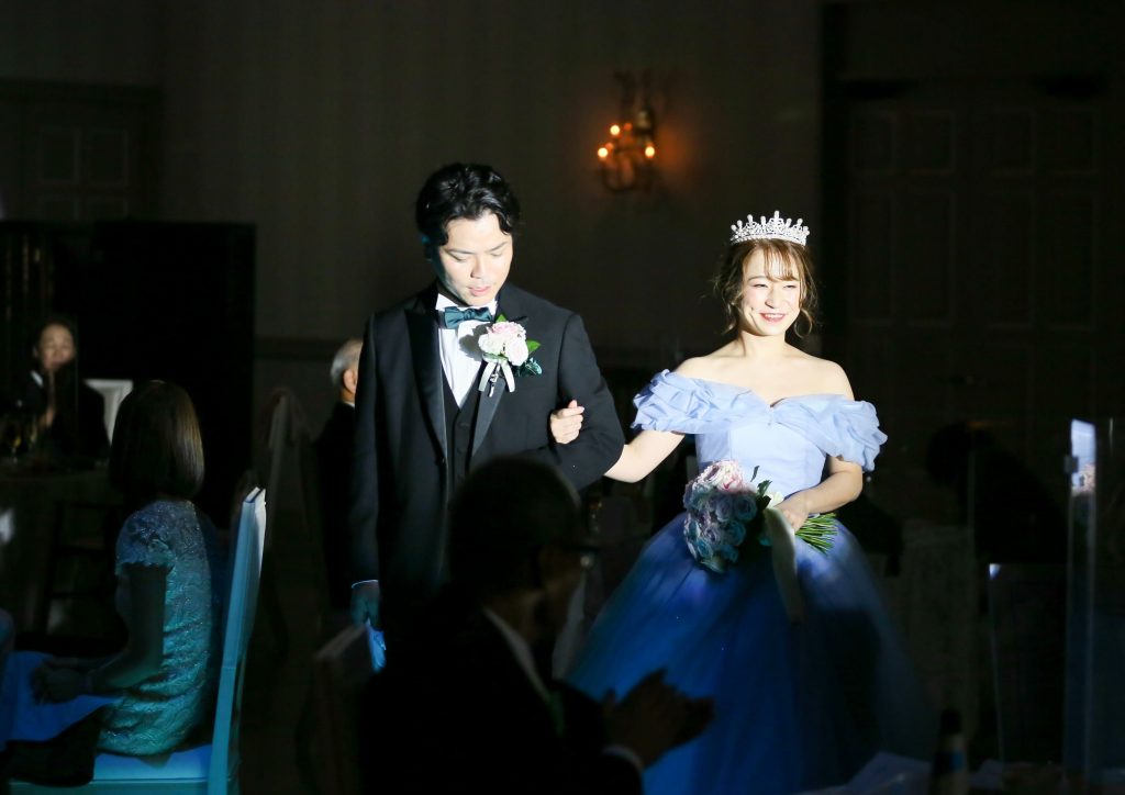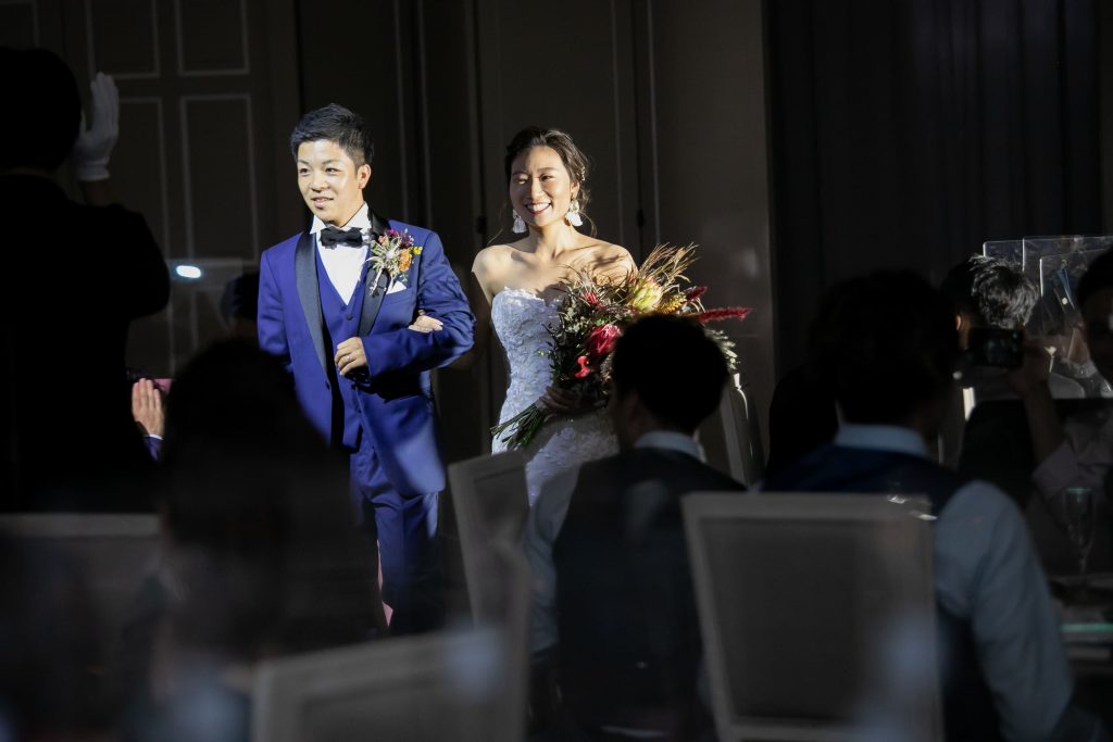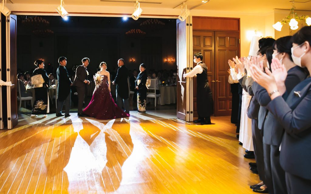 新郎新婦さまの中で目立ちなくない、緊張してしまうなどのお声をいただくこともある披露宴入場シーン。