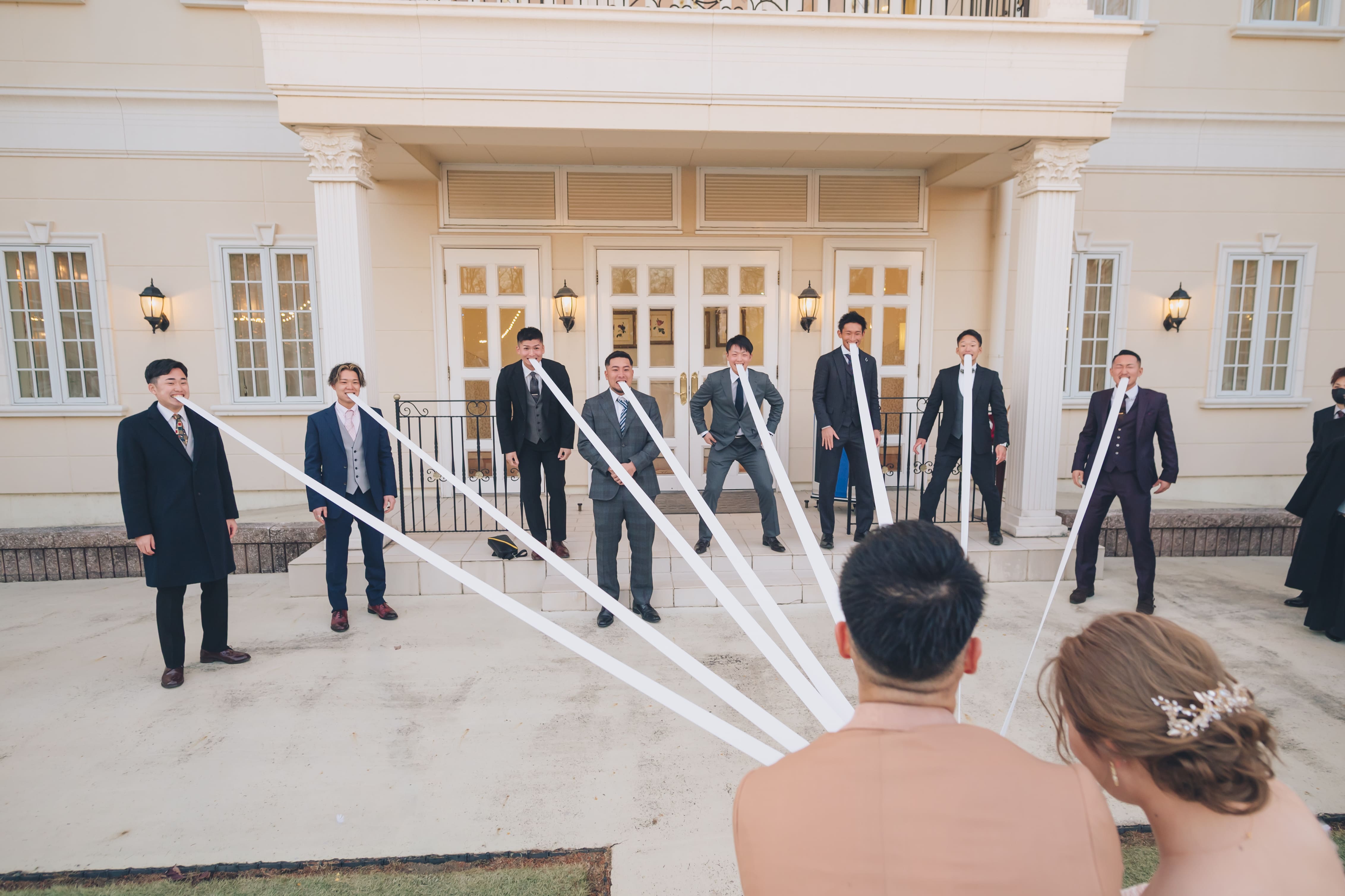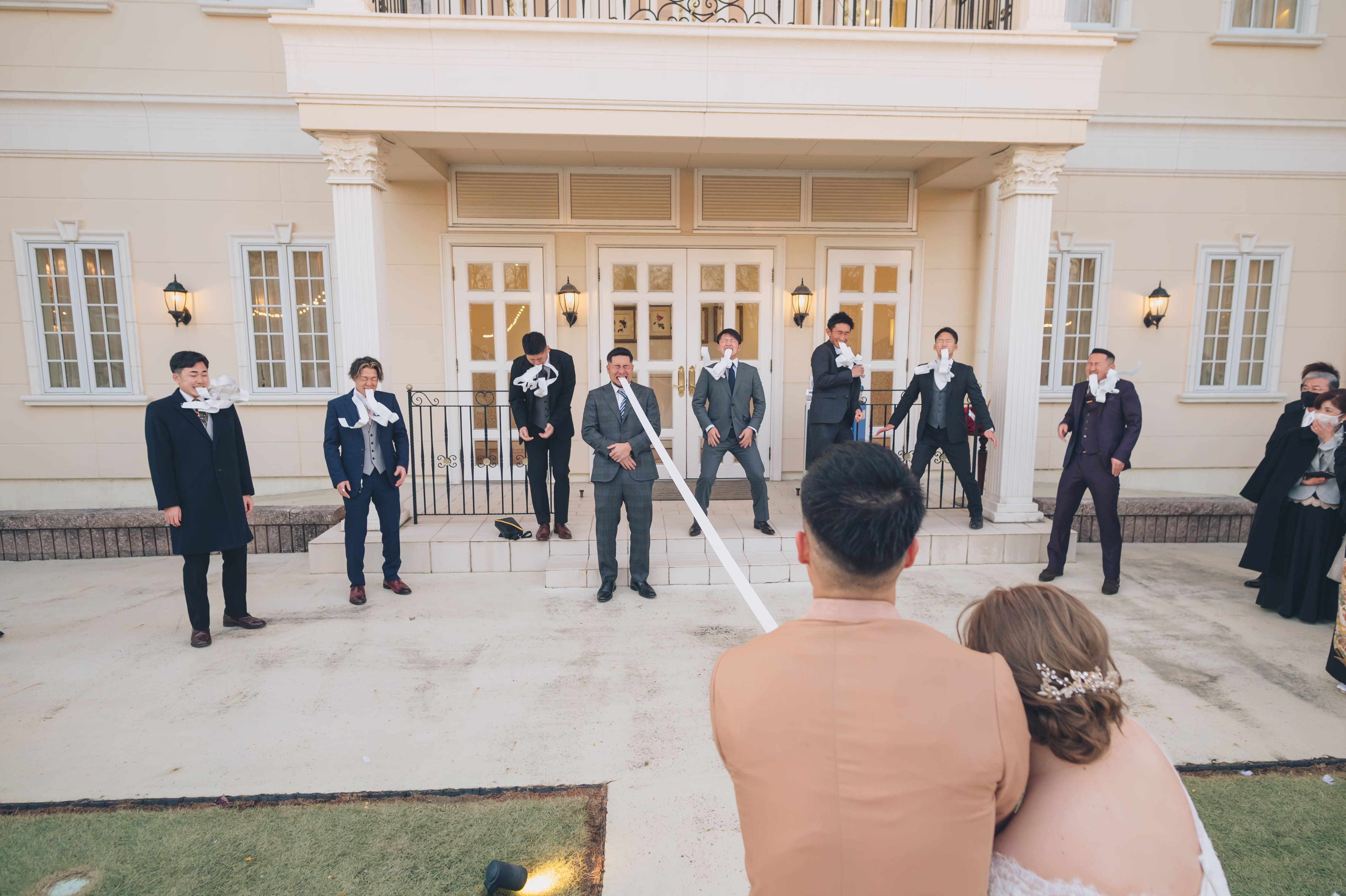 バルーンリリースとはうって変わって男性ゲストを巻き込んだ「ゴムパッチンセレモニー」
