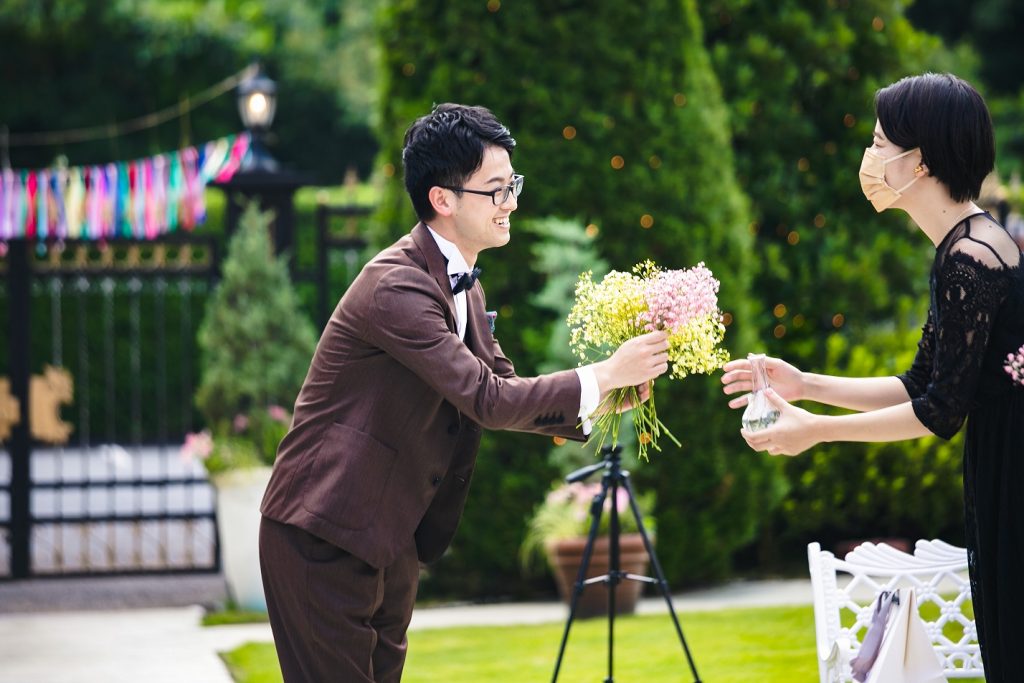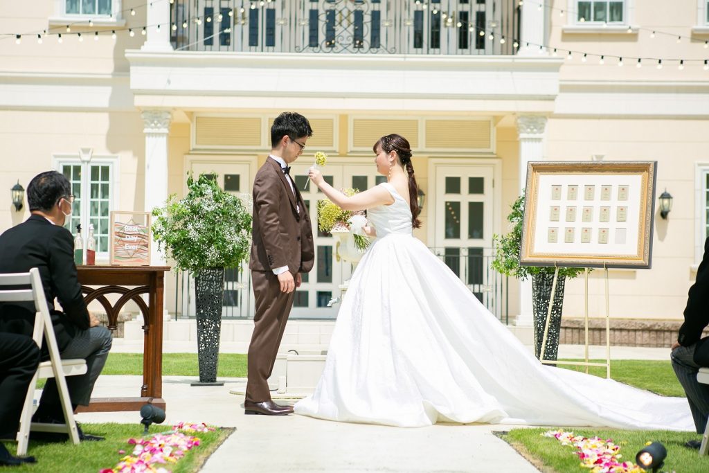 新婦様はプロポーズの返事として新郎様へ1輪のお花を返す瞬間も