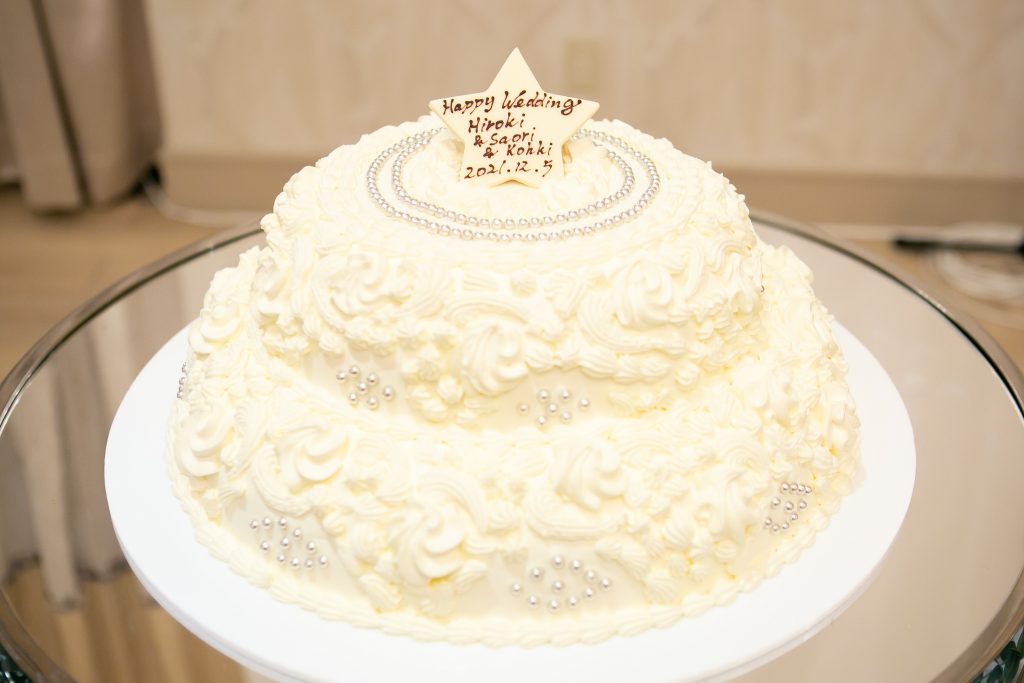 本日は結婚式の中でもゲストからの注目度が高いウエディングケーキ、お食事のデザートとしてもお召し上がりいただくウエディングケーキには「新郎新婦から大切なゲストへの幸せのおすそ分け」として最後に振る舞われます。