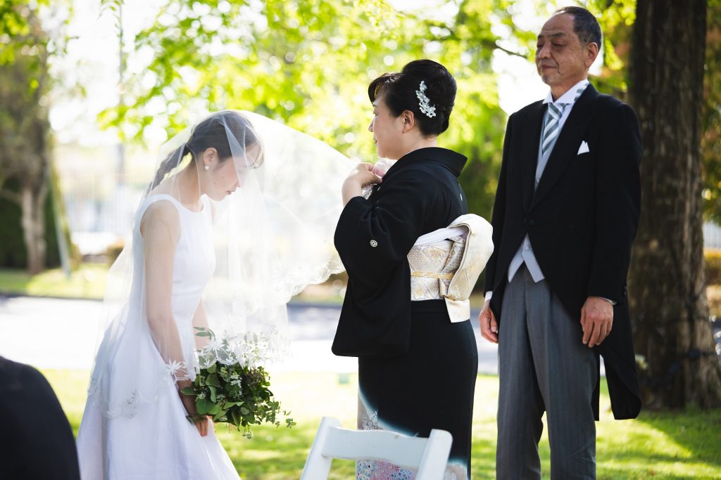 お父様が見守る中、お母様からのベールダウンセレモニー