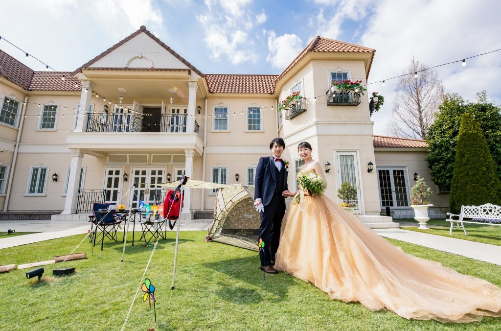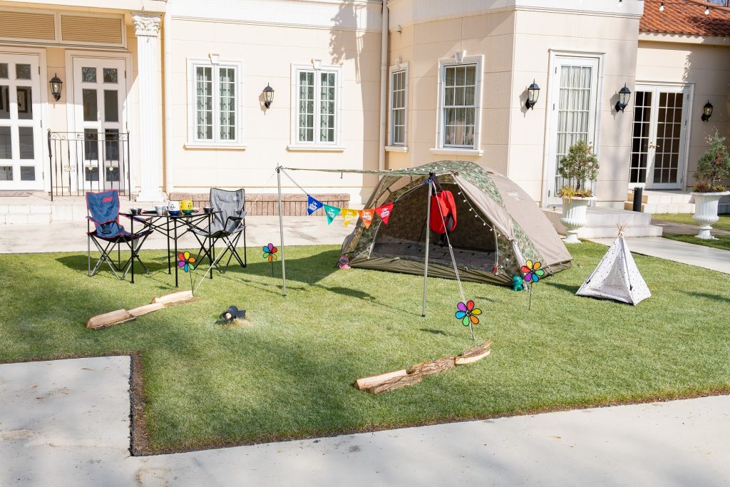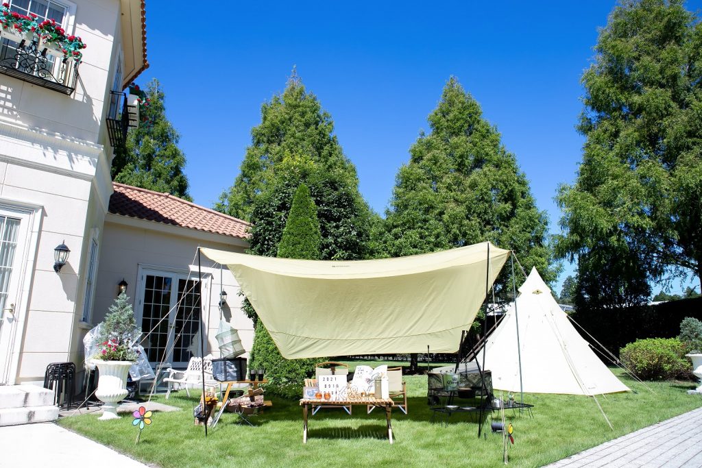 そして自然溢れるガーデンを通っていただくとそこにはなんとキャンプをイメージして