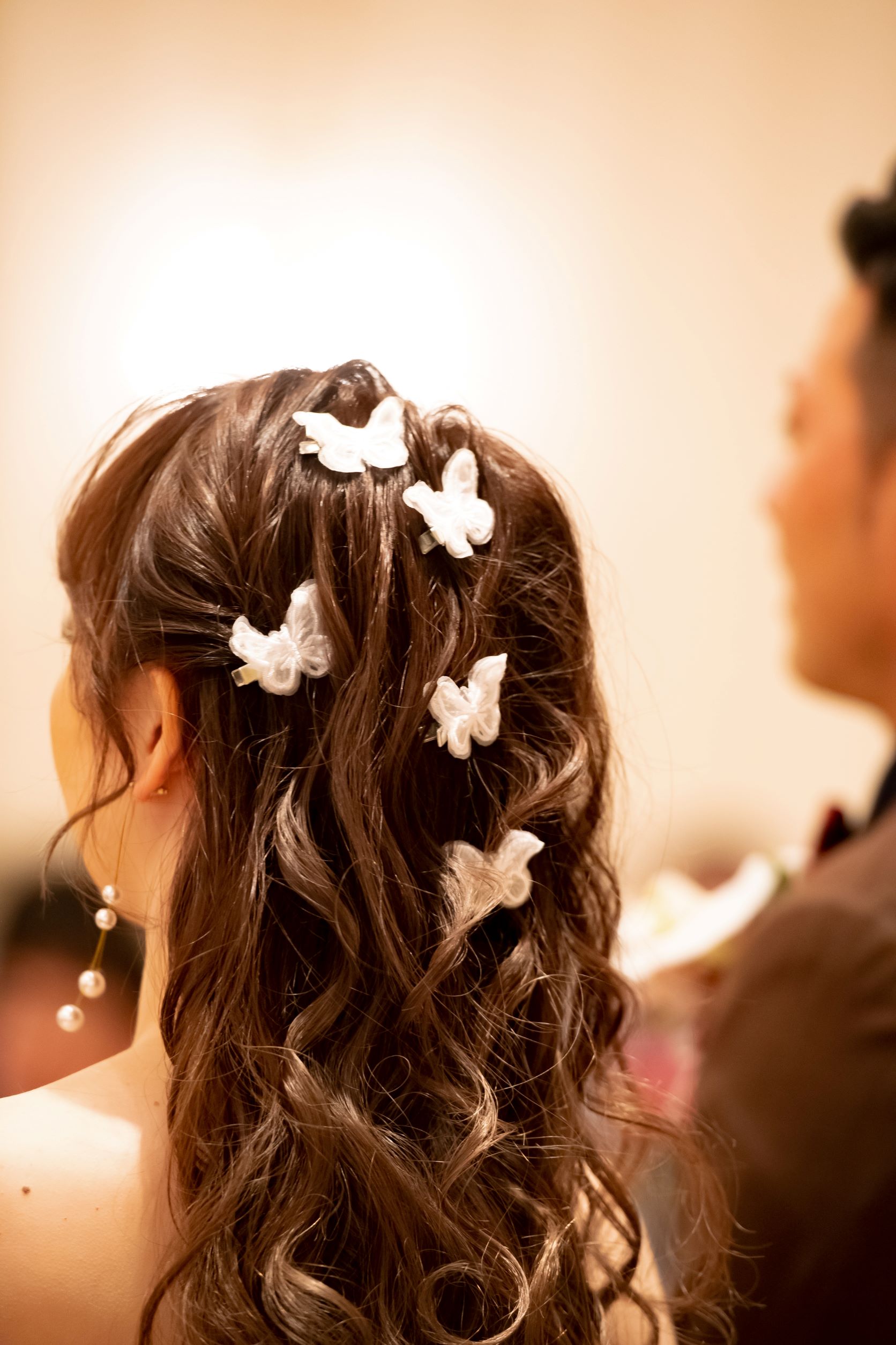 ダウンスタイルの中にも蝶のアクセサリーでワンポイント◎
