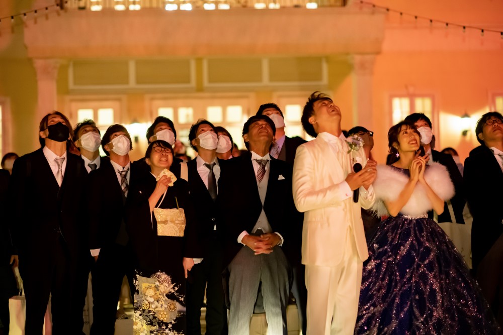 水戸ではフェアブルームだけしかできない演出を一つご紹介♪フェアブルームほどの広大な敷地を持つからこそ叶う演出のひとつ!ゲストのサプライズにもピッタリ♪夜空に打ち上がる花火は結婚式のフィナーレを飾り、ゲストの記憶に刻まれること間違いなし!