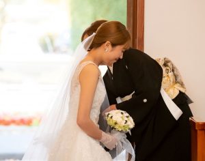 「おめでとう」「今までありがとう」「綺麗だよ」わずかな時間ですが、今までの思い出がよみがえり、お母様と向かい合う瞬間、涙があふれる新婦様とお母様。そして近くで見守るお父様からも背中でお父様からの温かさを感じる時間です。