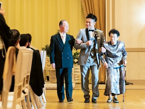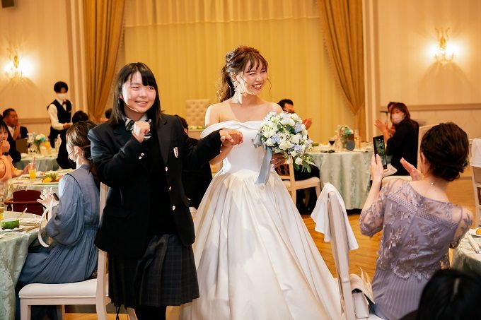 お打合せの中で、「ご一緒にお色直しの際に、中座されたい方はどなたですか?」と伺うと、「よく見かけるのは両親や兄弟、友人だから、やっぱり〇〇かな?」と悩みながらお答えになる方が多くいらっしゃいます。