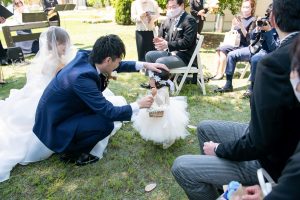 1歳になるお子様とご実家にいるワンちゃんに、リングガールとリングドッグをやって欲しくて…それを同時にやりたくて…リングガールが指輪を運ぶときに、ワンちゃんのリードを持って登場してほしいんです!