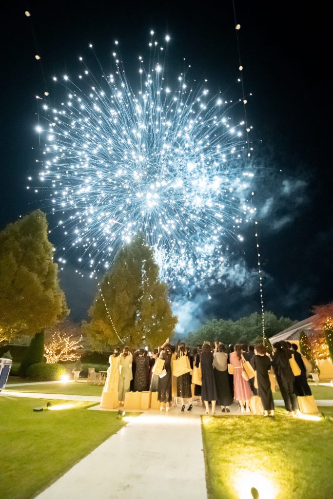 私達のテーマにもある「魔法」にかかるようにゲストへのサプライズを沢山準備しましたが特に打上げ花火にこだわりました。