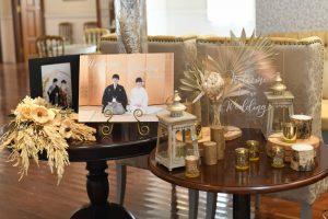 実はこのスペース、おふたりのお写真を除いてすべてフラワーコーディネーターが準備してくれたもの。