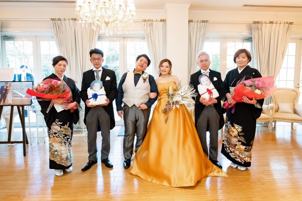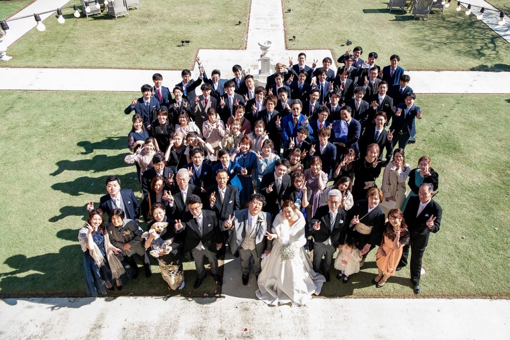 フェアブルーム水戸の広大なガーデンで、ゲストの皆様と記念写真