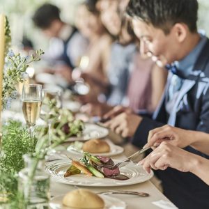 ゲストとおふたりのフリータイムもかねて、お食事を演出にすることで