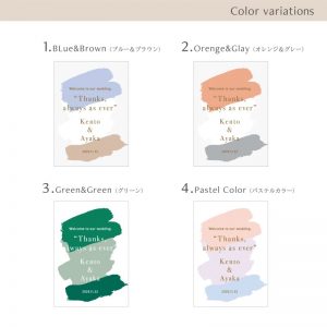 ひときわ目を引く3色のカラーで彩った華やかなウェルカムボードでゲストをお出迎え!